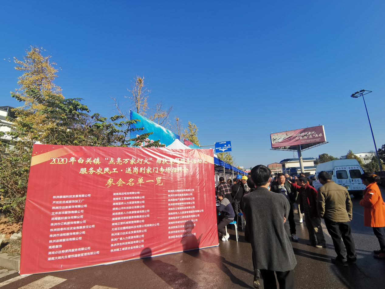 为给广大农民工搭建求职通道,同时也为用工单位吸纳人才构筑平台,11月14日,2020年白关镇“点亮万家灯火”帮扶主题服务活动之“服务农民工·送岗到家门”专场招聘会在芦淞区白关镇中心花坛举行。