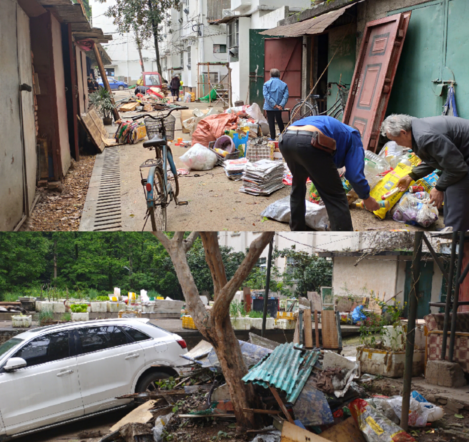 幸福社区为确保居民有一个优美的居住环境,在接到小区居民反映幸福村6栋前有垃圾未及时处理,导致其被雨水淋过后产生腐烂味道影响小区居民正常生活时,第一时间派工作人员仔细了解情况并主动联系新航公司对小区进行整治清理。最终,在社区工作人员、保洁人员和居民的共同努力下,现场的生活垃圾和建筑垃圾已被分类清理并消毒。