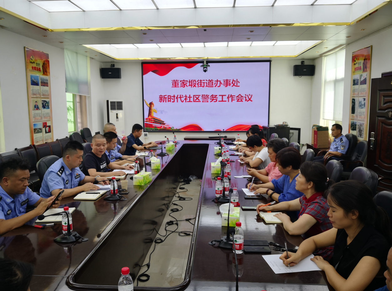 7月13日下午,董家塅街道办事处召开新时代县域警务工作会议。董家塅街道党工委副书记金健,分局董家段派出所所长马文科,分局五里墩派出所所长彭赢,董家塅街道辖区各社区、行政村主要负责人和董家段、五里墩派出所社区副所长及社区民警参会。