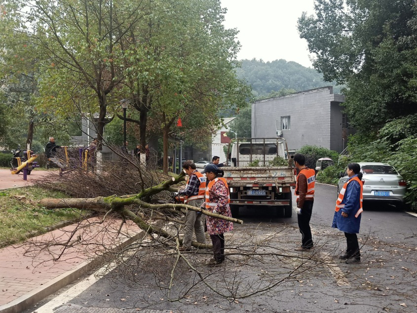 董家塅街道欣月社区工作人员通过日常巡查发现,辖区部分老树腐烂老化、树干倾斜、根部已经掏空,遇到大风大雨雷电天气可能倾倒,会给附近居民来往出行造成安全隐患。11月9日,便立即联系园林科工作人员到现场查看,对危树进行了砍伐,及时排除了安全隐患。