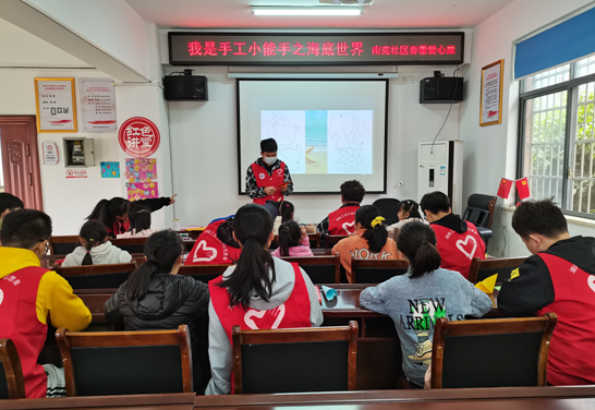 为了进一步丰富社区青少年精神文化生活,锻炼动手能力,营造和谐快乐的文化氛围。4月10日,株洲市妇联南苑社区春蕾爱心屋联合湖南工业大学理学院开展“我是手工小能手之海底世界”活动,董家塅街道南苑社区网格内的困难家庭青少年参加此次活动。