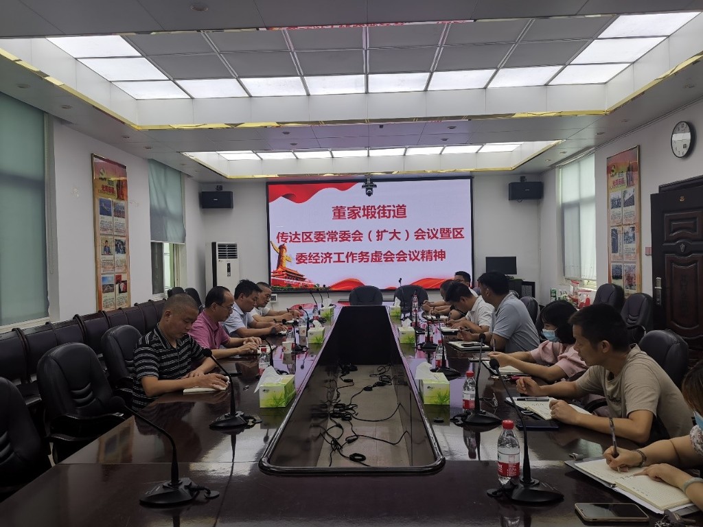 2021年8月20日下午3点,董家塅街道召开党政联席会议,深入学习贯彻区委常委会(扩大)会议暨区委经济工作务虚会议精神。