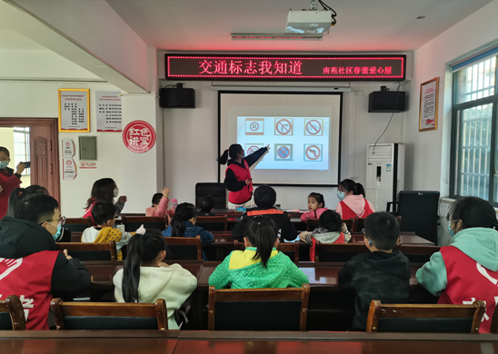 为增强社区青少年的交通安全意识,普及交通安全知识,12月4日,株洲市妇联南苑社区春蕾爱心屋联合湖南工业大学理学院志愿者开展全国交通安全日——“交通标志我知道”活动。董家塅街道南苑社区网格内20余名青少年参加。