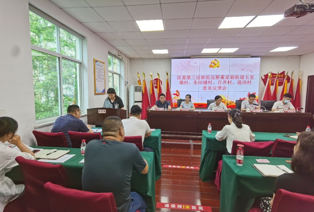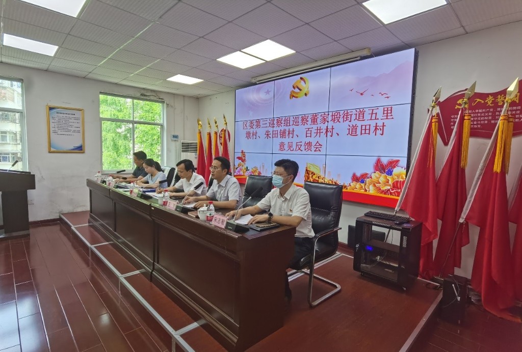 根据区委和区委巡察工作领导小组的统一部署,6月9日,区委第三巡察组在董家塅街道办事处四楼会议室召开巡察董家塅街道朱田铺村、五里墩村、百井村、道田村反馈会, 区委常委、组织部长李石德,区纪委常务副书记、监委副主任王瑊,区委巡察办主任武叶帆,区党风政风监督室主任旷悦祎,区委第三巡察组组长宋志敏出席会议,街道党工委领导班子成员、各股室负责人、朱田铺村、五里墩村、百井村、道田村四位村书记及两委成员参加会议。